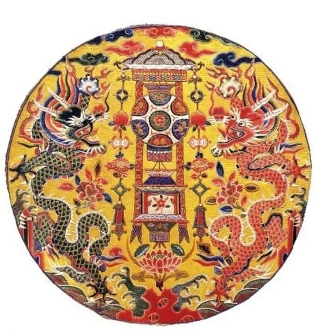 明万历 刺绣双龙抢珠灯景补子