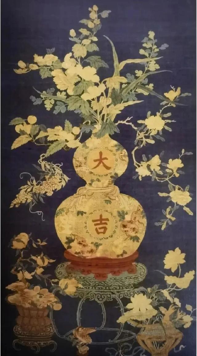 葫芦绣得精细,藤蔓缠绕着,葫芦谐音“福禄”,中国东说念主一直最爱重祥瑞寓意,新年更是要讨个祥瑞的口彩,腊月二十四,明宫里就运转为正月预热,高下一片吉庆。