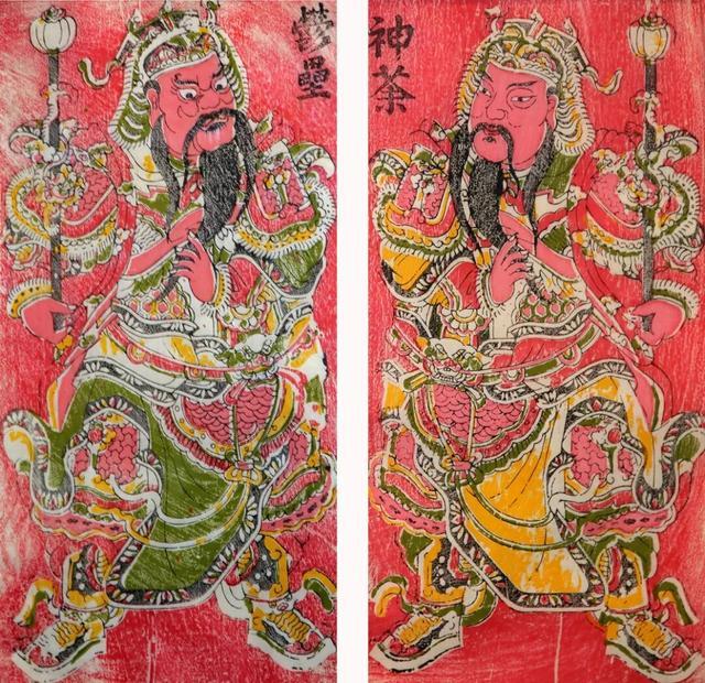 神荼、郁垒画像及桃木板雕像