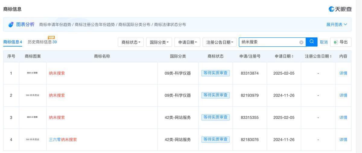 业务上,旧年11月份360集团认真推出纳米搜索,天眼查APP商标信息判辨,2024年11月26日,三六零纳米搜索商标才苦求注册。本年8月份,纳米AI升级为“多智能体蜂群”进一步莳植AI才能。