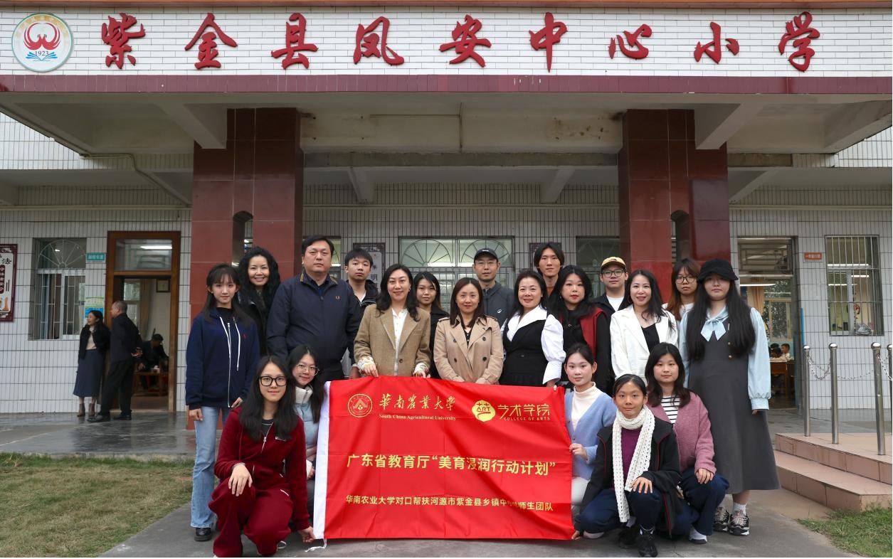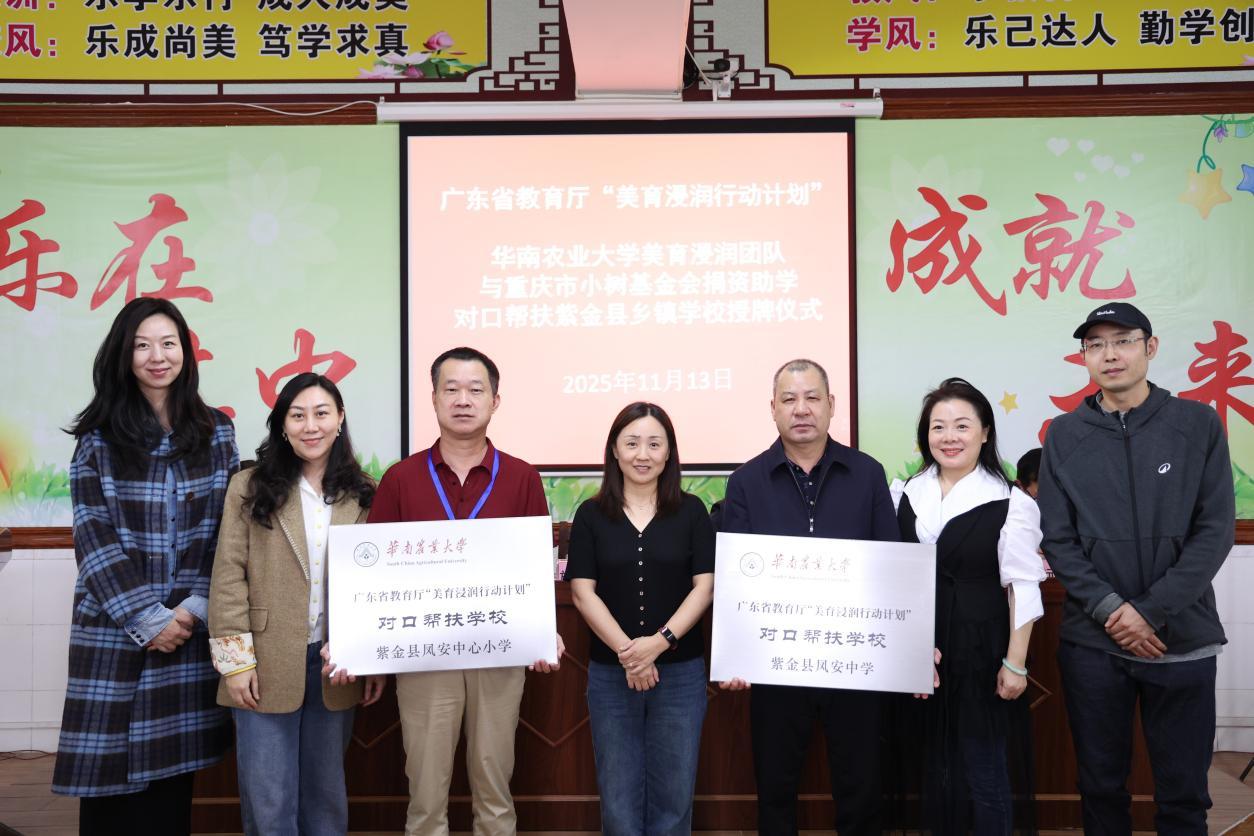 近日,为贯彻落实广东省种植厅“好意思育浸润步履想法”与“双百步履”部署,华南农业大学艺术学院党委通知施娜柯率华农好意思育浸润团队近20东说念主,赴河源市紫金县凤安镇中小学开展好意思育帮扶举止。团队通过授牌庆典、闲谈疏浚、课程实施、好意思育指挥等多种体式,与当地学校共商好意思育发展旅途、共同鼓励州里好意思育种植。