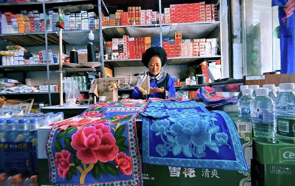 “老先人的技能不行丢!”在赵国芝看来,藏羌织绣不仅是一门惩处活命问题的技能,更是传承千百年的藏羌文化。2010年,跟着灾后重建的鼓动,县城的旅客越来越多,她决定扩大店铺辩论,一边辩论烟酒百货,一边利用安静时辰络续制作藏羌织绣。