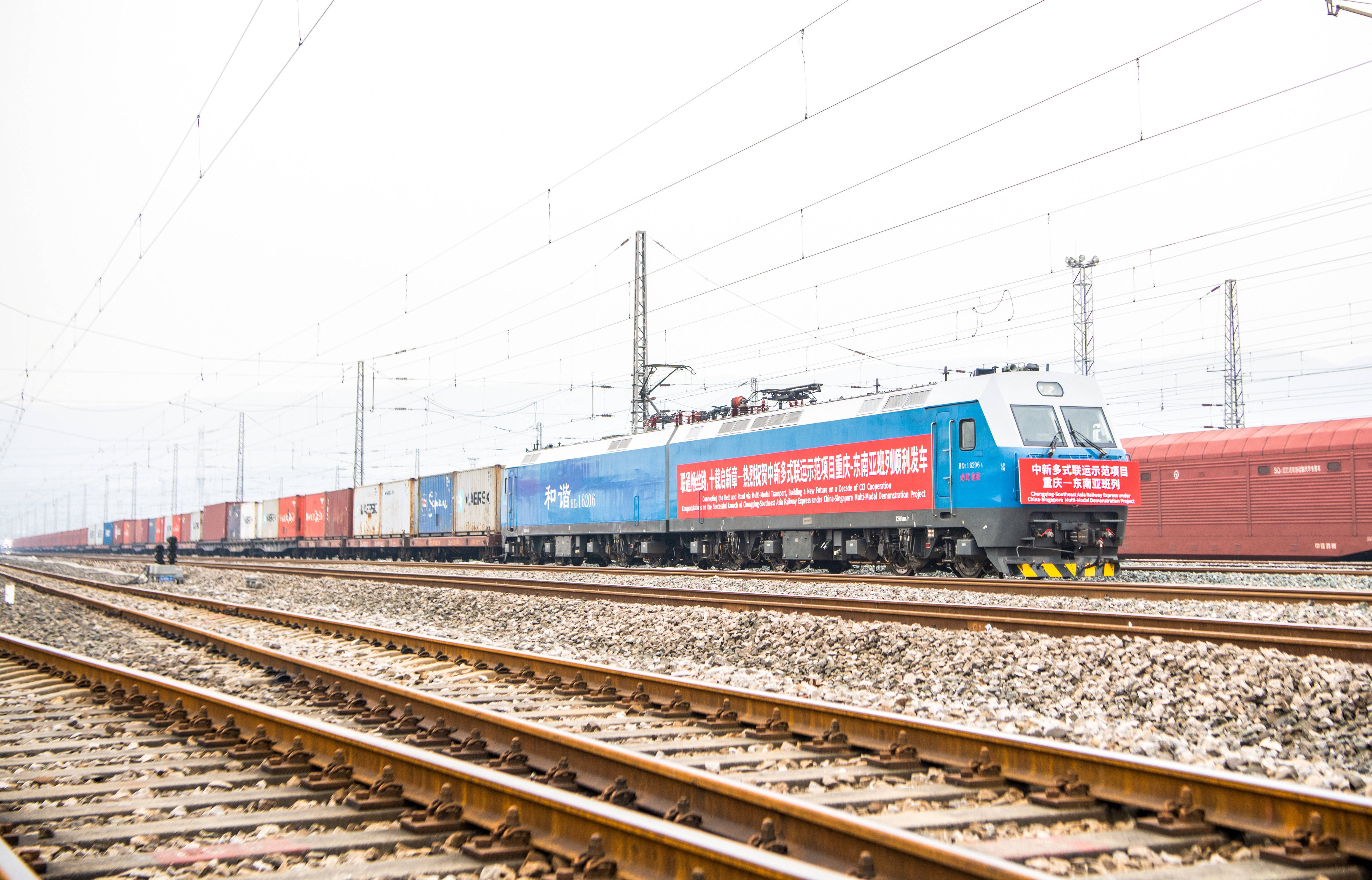 15日,一列装载化工居品、摩托车零配件等货品的列车,冉冉驶出重庆鱼嘴铁路货运站,向南经广西钦州以铁海联运形状前去新加坡;另一条轨说念上,一列装载汽车KD件的海外班列同步发车,向西驶往哈萨克斯坦。这对班列的开通有机相接了中欧班列和陆海新通说念,也见证着中新互联互通神色十年后的扬帆再启航。